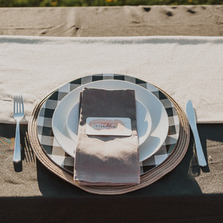 Resting: This is when you have the napkin resting on top of the plates. I will add to it with a name card, a piece of greenery, tied with a little twine. You get the idea.